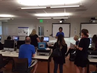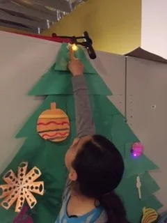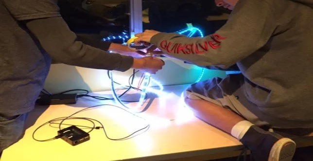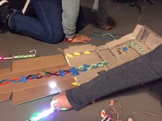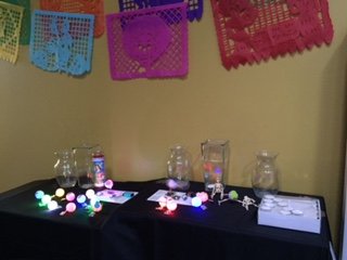 Summer 2016 was the first year partnering the Maker program with Nuestra Voz. The teens designed, programmed, and created light up props for their plays including a motion sensing microphone, LED strip portal, and light up snap bracelets. In following years they improved on the bracelets and portal design, as well as made a variety of other props including a "orb jar", light-up cane, and neo-pixel goggles.