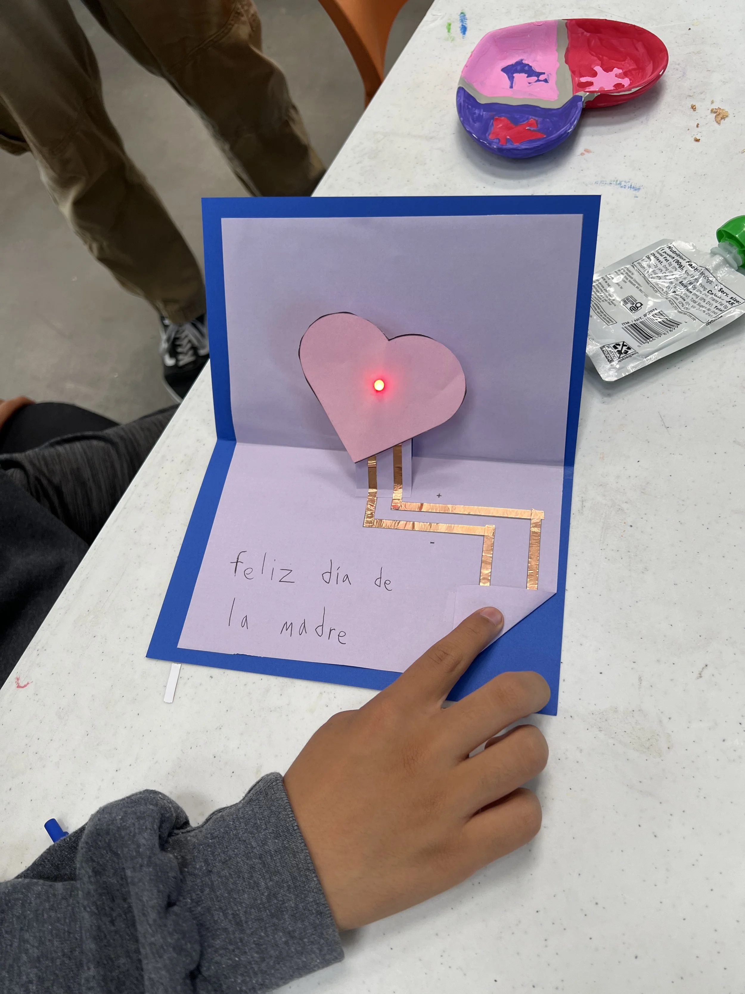 Crafting LED Mother's Day cards added a touch of innovation and heartfelt warmth to the celebration as the students integrated LEDs (Light-Emitting Diodes) into their creations. This hands-on activity encouraged the students in K-12 to explore electronics, design, and aesthetics while expressing their love and gratitude for their mothers in a unique way.